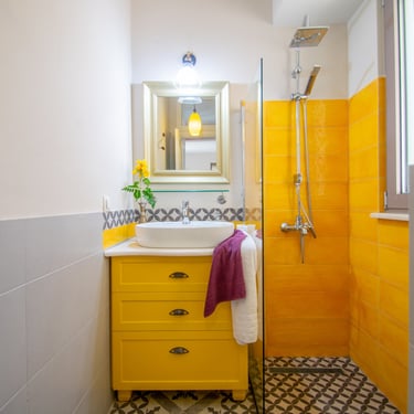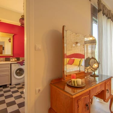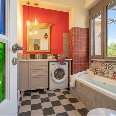 Bright vintage-inspired interiors, carefully chosen details, and vibrant colors.